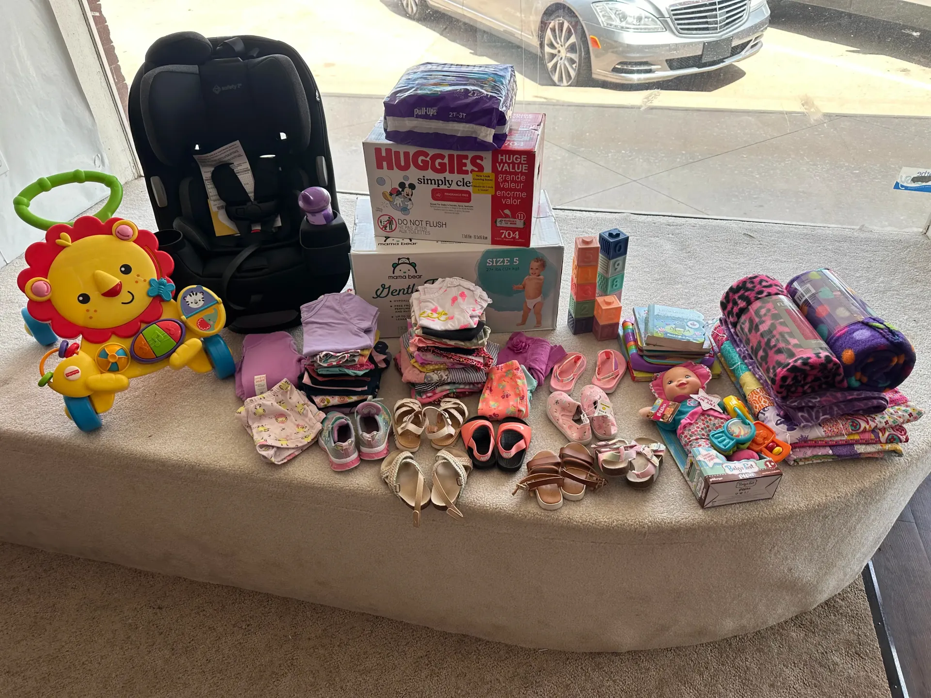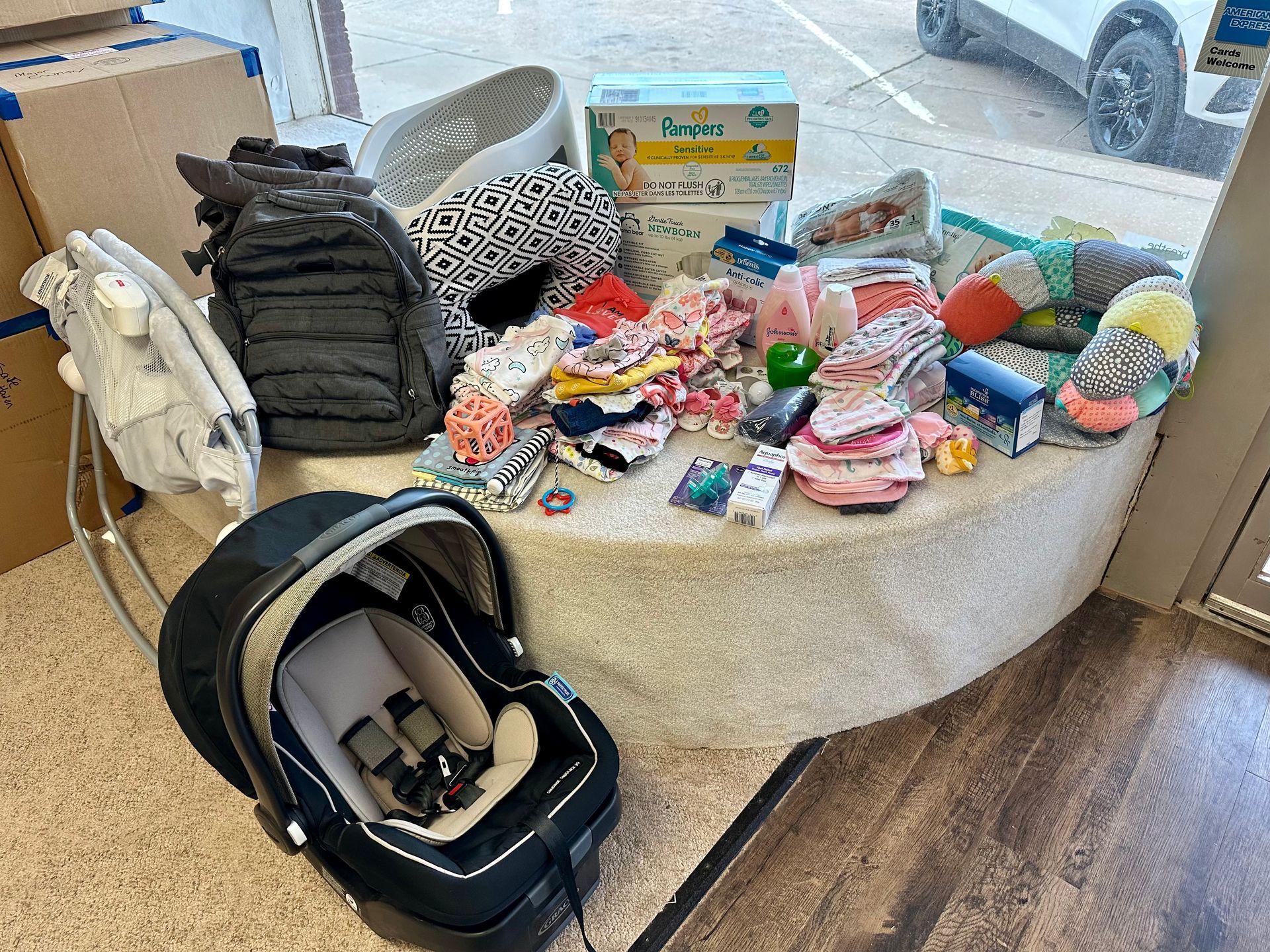 We provide clothes, shoes, diapers, wipes, baby supplies, formula, school items, car seats, strollers, and essential furniture—all free of charge to families in need.